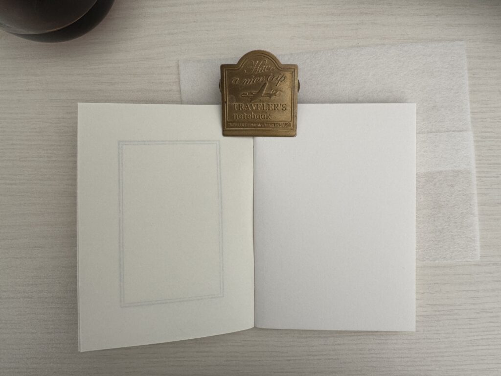 トラベラーズノートはクリップで留めないと、ページが閉じてきてしまうので使いました。