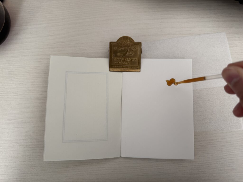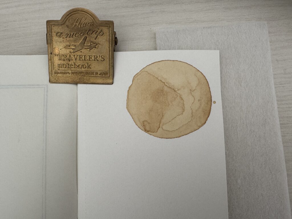 このときは万が一、ページの外にコーヒーが溢れてもいいように、リフィルの下にペーパーを敷きました。