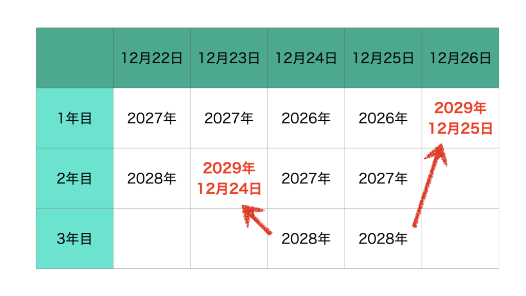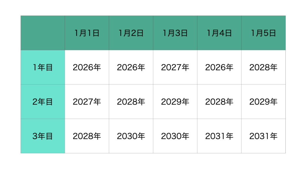 3年連用日記を例にして、どんな風に日記が貯金されるかを考えてみます。